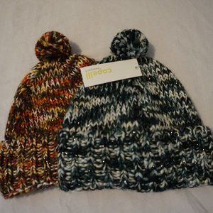 Set of 2 Capelli New York Blue/White-Silver and Red/Purple/White/Gold Pom Beanies. New w/ Tags.