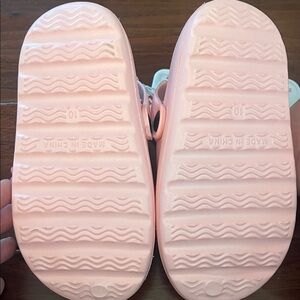 Adorable sandals with watermelon accents. Light pink color. Comfortable for all-day wear.
