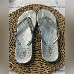 Capelli of New York Silver Flip Flops with Rhinestone Accents. Size 9.