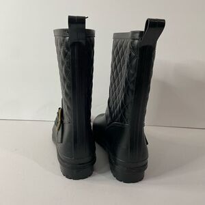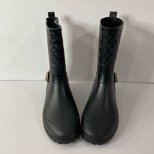 Capelli of New York| woman| Rain boots| black| gold buckle detail| Quilted mid calf| Waterproof