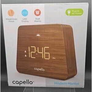 The Capello Digital Clock is a modern and stylish alarm clock featuring a wood grain finish, perfect for adding a touch of elegance to any room. With dual alarm functionality and an LED display, this clock is both functional and eye-catching. Made with wood materials and an electrical power source, this standard alarm clock is designed for adults and manufactured in the 21st century. The Capello brand ensures quality and reliability, making this clock a great addition to any home décor.