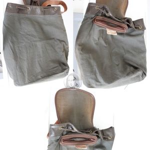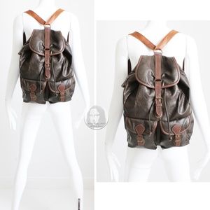 Capezio Backpack Rucksack Brown Leather Trim Large Sling Bag Vintage 80s HTF