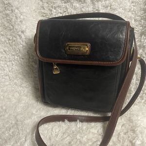 Capezio Black Leather Crossbody Bag with brown trim and gold tone hardwares