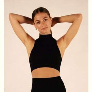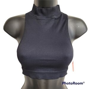Capezio Black Ribbed Crop Dancer Ballet core Athleisure Top M/L