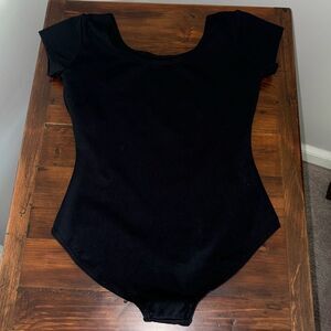 Excellent condition, Capezio Dance Gymnastics Leotard Girls Size L Child. Black one piece short sleeve leotard, 90% nylon and 10% spandex.