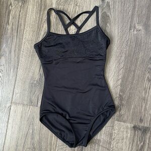 In excellent used condition. Was lightly worn. Perfect for ballet class. Ribbon in the front of the leo was ripped and cut off. (See second to last picture)