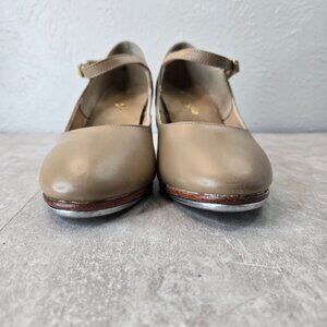 Capezio Mary Jane Tap Dancing Shoes 9.5 Tan Leather Dressy Ballerina Pump Heels (D5-035)