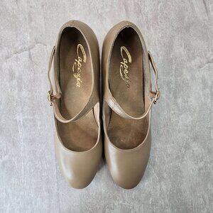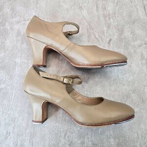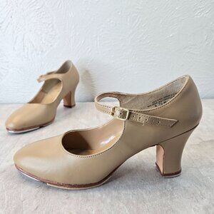 Capezio Mary Jane Tap Dancing Shoes 9.5 Tan Leather Dressy Ballerina Pump Heels
