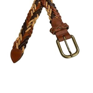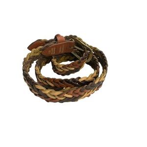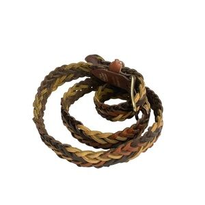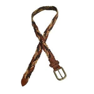 Vintage Capezio Women's Size M/L, Made in Argentina, Brown Multicolor Braided, Genuine Leather Belt, Woven Length 37.5”