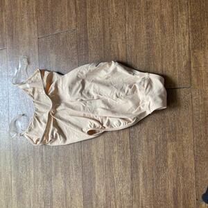 Capezio Nude Leotard Clear Straps Tan Bodysuit Gymnastics Dance Sz Medium