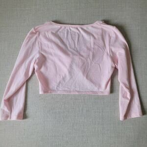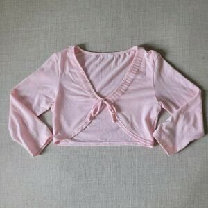 Capezio Pink Ballet Cardigan. Tags removed, size 5/6 yrs. Shows pil, especially on sleeves.