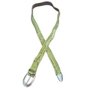 Capezio Vintage Green Leather Braided Belt XXL Chrome Buckle Argentina 2X
