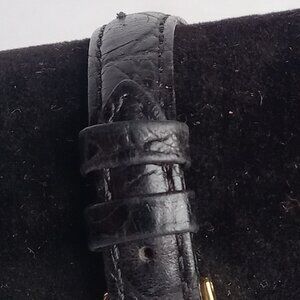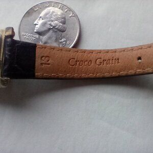 This a used watch that is a Capezio watch with a replacement black Kreisler Crocodile grain band. The watch itself is not working but may just need a battery; I don't know so selling as is. Some wear on the watch, might be buffed out. Band has been worn but is in good condition. Would be a great little watch for parts also. In wearable shape, just needs a little love.