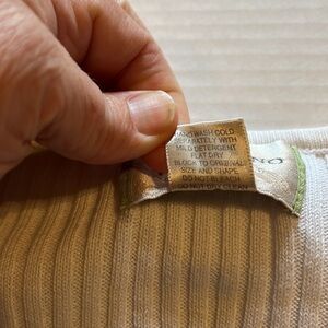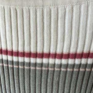 Capistrano essentials-22/24-white/pink/gray short sleeve ribbed pullover sweater. 55% acrylic, 45% cotton. Small discoloration in front, shown in the third picture really hard to see can’t see with the naked eye. See photos for approximate flat measurements.