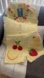 This pastel yellow vest with a button front features embroidered fruits around the neckline for a cheerful and fun summer look. Machine-woven fabric with a handmade crochet keychain.