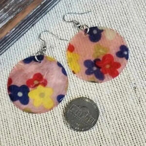 Capiz Shell Earrings Pink Blue Yellow Flowers