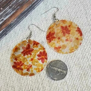 Capiz Shell Earrings Red Orange Flowers Handmade