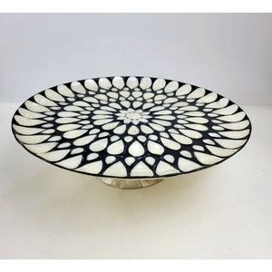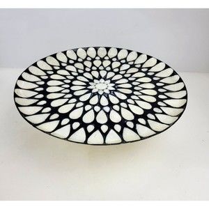 Stunning handmade Black and Ivory Capiz Shell Inlay Decorative Pedestal Cake Stand Plate.