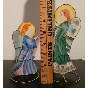 Capiz Shell painted Winged Christmas Praying Angels on Stands.