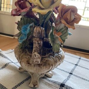 Flower vase pink yellow and blue flowers Imported from Italy in 1980 15w x 14.5 h Beautiful collectors piece
