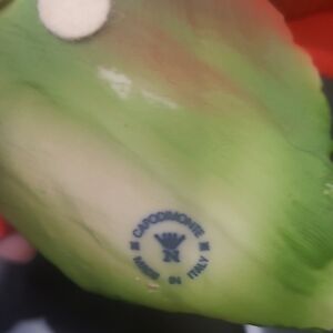 Beautiful red rose porcelain deisgn with green leaves. Perfect for adding a touch of elegance to your home. Made in Italy.