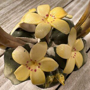 Capodimonte Italy Floral Basket Handcrafted Bow Miniature Figurine Yellow
