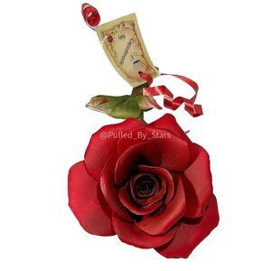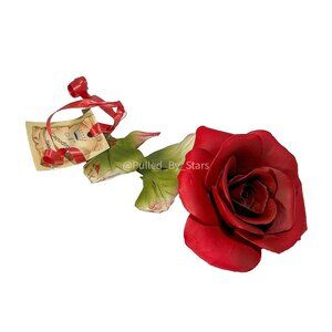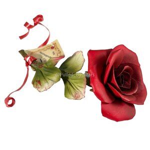 Capodimonte Naples Italy Handmade Hand-Painted Porcelain Red Rose w/ Green Stem