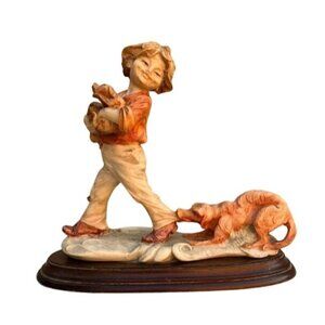 Capodimonte Pucci Vintage Collectible Boy With Puppies Dog Porcelain Figurine