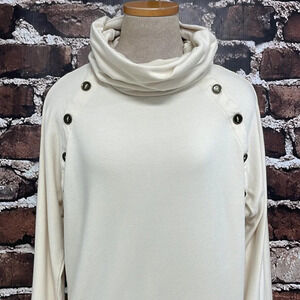 Capote Maisy Pullover Sweater Bamboo Buttons Cowl Neck Cream Size Medium M