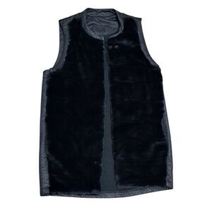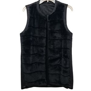 Capote Women Lagenlook Open Front Faux Fur Faux Leather Vest Jacket Small Black