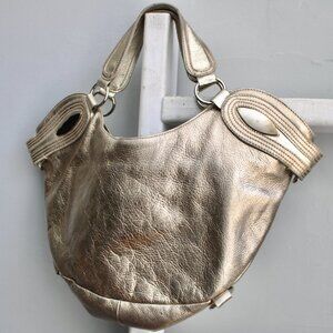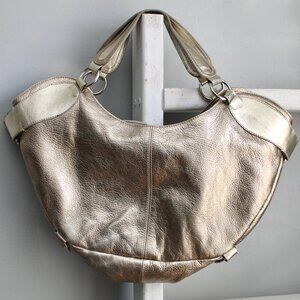 Capoverso Vintage Y2K Metallic Gold Leather Large Hobo Shoulder Bag Purse