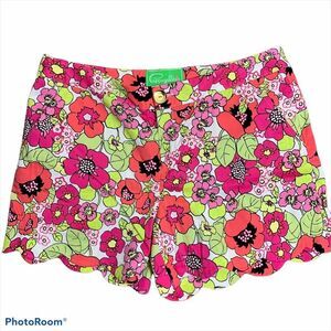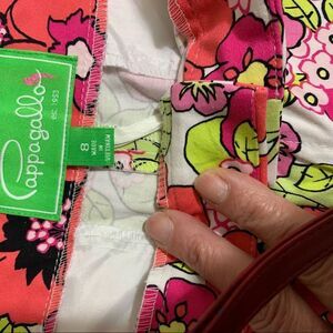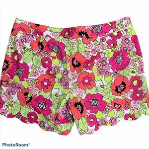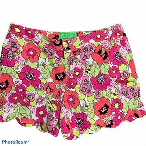 Cappagallo Floral Scalloped Hem Shorts 8 Pink Green Yellow