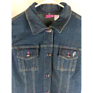 Cappagallo Women's Blue Jean Denim Jacket Button Up Size XL Cotton Spandex...