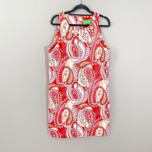 Cappagallo red white jeweled sleeveless knee length shift dress Size 12