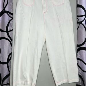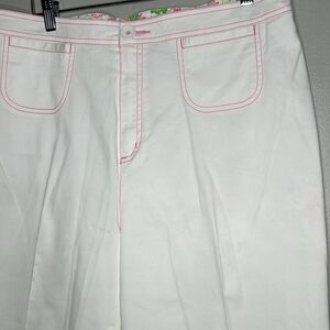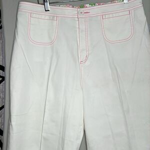 Cappagallo white cotton blend pants with hot pink trim size 16