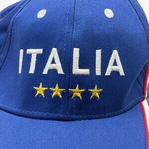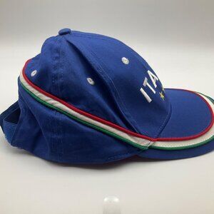 A stylish Unisex blue cap with detailed embroidery, showcasing Italian pride. Adjustable strapback ensures a comfortable fit. Lightweight and breathable cotton material. Very good condition