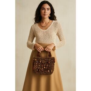 boho coastal luxury with this stunning Cappelli woven beaded purse, featuring natural straw-style weaving, rich wooden handles, and dangling amber-toned beads that catch the light beautifully. This bag blends vintage charm with modern resort style, perfect for beach vacations, summer brunches, or adding a touch of earthy elegance to any outfit.