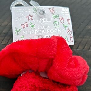 NWT Cappelli Christmas Holiday Slipper Socks 2 pair & Scrunchie Set. Santa style stocking red and green holiday socks. Size S/M.