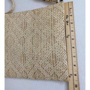 Cappelli NWOT Straw Woven Beige Small Clutch Bag With Rope Handle & Wooden Beads