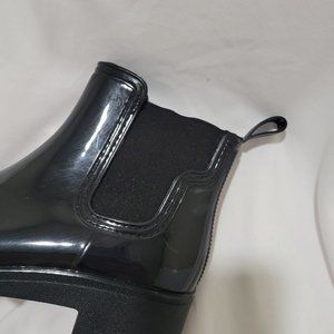 Make a splashing statement on rainy days in these urban-chic rain boots, modernized with an ankle-grazing shaft, minimalist upper atop a walkable, traction-safe block heel.
