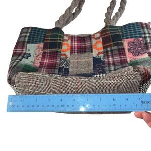 Cappelli Straworld. Wool blended, quilted patchwork shoulder bag. Zipper top, inside pocket. Twisted strap. This a wool blend and has some pilling to straps and some very light pilling to bag. Still looks great with tons of life left! Perfect for fall and winter. Gently used, pre-loved condition.