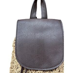 Cappelli Straw Crochet Back Pack Bag/Purse Straw w/Brown faux Leather 10"x9"x6"