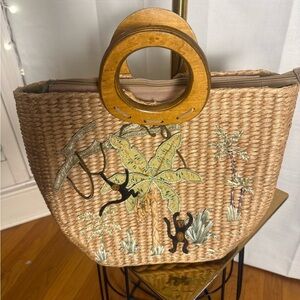 Cappelli Straworld Embroidered Straw Tote Monkey Palm Tropical Beach Bag