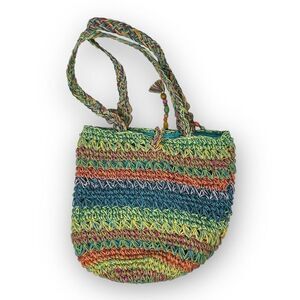 Cappelli Straworld Inc Rainbow Multicolored Boho Straw Woven Shoulder Bag Purse