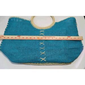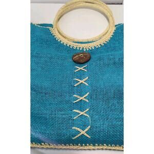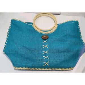 Cappelli Straworld Tote Bag, Gorgeous Blue (Torquise) with Button as accent. Condition is Pre-owned. Shipped with USPS Ground Advantage.