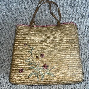 Cappelli Straworld Vintage Women’s Beachy Boho Tote Purse Ladybugs And Flowers