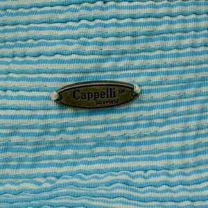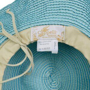 Cappelli White/Turquoise Wide Brim Floppy Packable Bendable Sun Hat Women's. The hat has an adjustable drawstring. In great, gently used condition. ***please note there are two small glue spots on hat where there was once a ribbon (see last two photos).