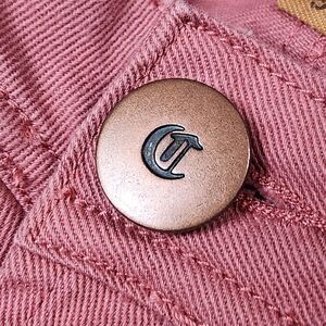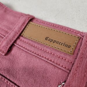 Cappuccino Jeans Women's Size 9 Pink Denim Mid Rise Flare Leg With Embossed Metal Button On Waistline. Y2k Style Bratz Barbie Preppy Bell Bottom Pants Style.