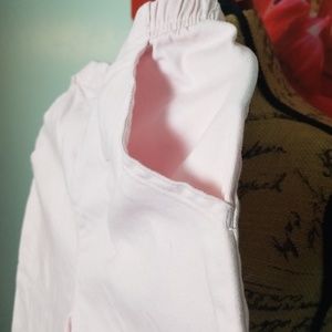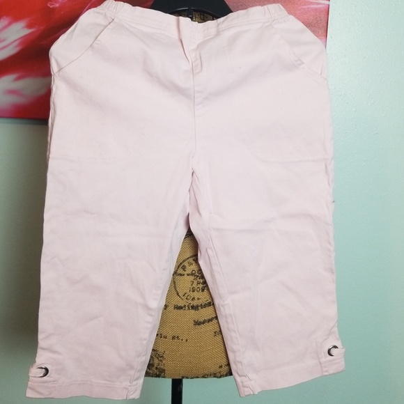Light pink petite stretch capri. 97% cotton 3% spandex.