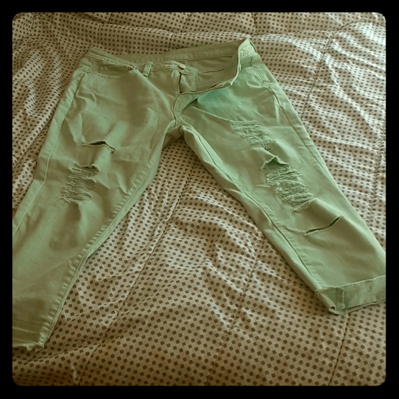 Teal, ripped , Jean capri